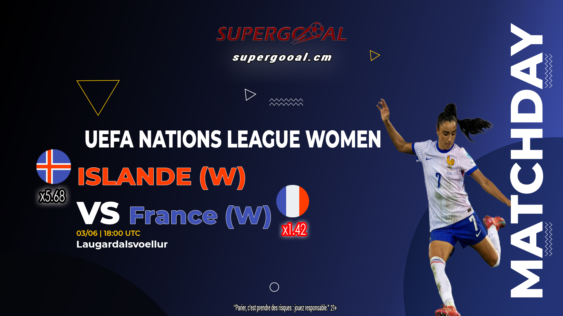 Rien ne sera laissé au hasard dans la rencontre de la 6ème et dernière journée phase de groupes en EUROPE- UEFA NATIONS LEAGUE WOMEN. Une étape de compétition qui permettra à chaque nation de se mettre à la hauteur de ses ambitions et tenir ses objectifs dans cette compétition. Le leader des Paris sportifs vous invite à vivre de bons moments à travers Supergooal !