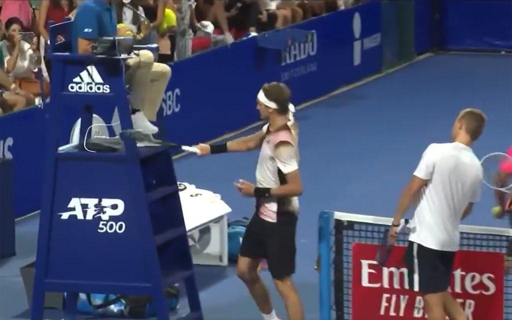 Dans le jeu décisif, après une balle litigieuse, le numéro 3 mondial a frappé à pleine puissance plusieurs fois dans la chaise de l’arbitre. Sa raquette est passée à quelques centimètres des pieds de l’officiel, terrifié, tandis que son partenaire est passé à côté… comme si de rien n’était.